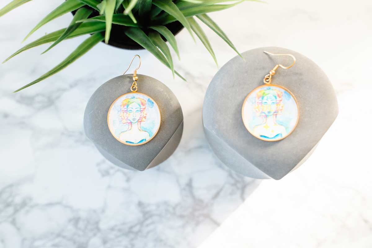 Les boucles d’oreilles d’inspiration “JE SUIS MULTIFACETTE”, créées en collaboration avec Delphine Verrière.